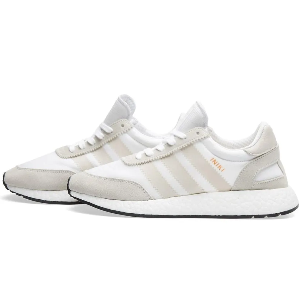The 70s inspired adidas Iniki Runners are constructed from suede overlays on the toe and heel, which lend a vintage look to their stretch-mesh uppers. These shoes slip on fast thanks to their sock-like structure and trademarked boost technology energises your step, while a webbed rubber outsole offers great traction. A tonal colour palette holds your attention, while serrated 3-Stripes add an iconic edge next to the gold-foil "INIKI" text.