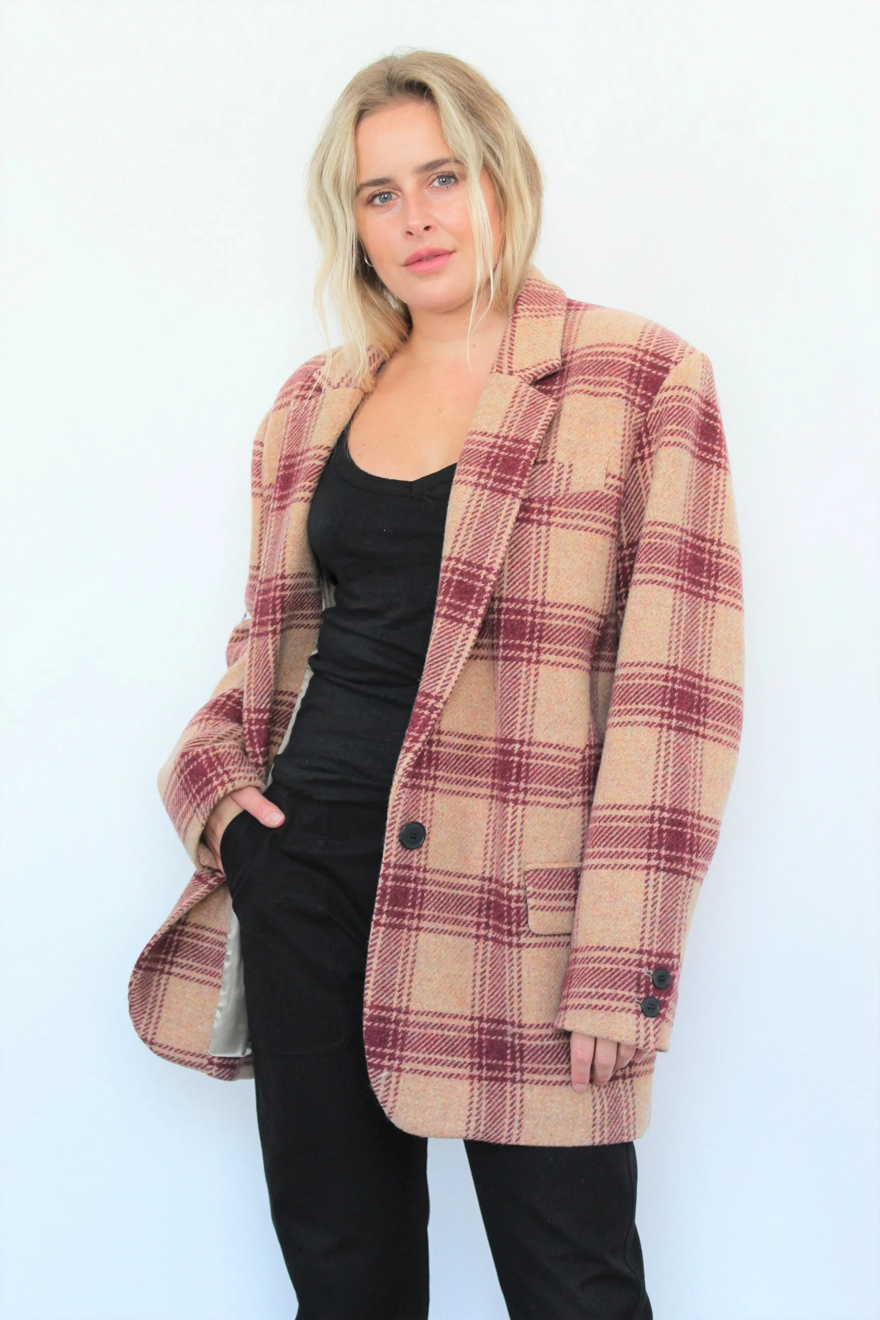 The 'Kaito' woven jacket from Isabel Marant Etoile is a vintage inspired wool jacket. The jacket has a burgyndy and brown check pattern and an oversized look. With a classic front button fastening, chest welt pockets and front flap pockets, the jacket is a timeless style. Layer the oversized jacket over any autumn outfit for a pop of retro print.